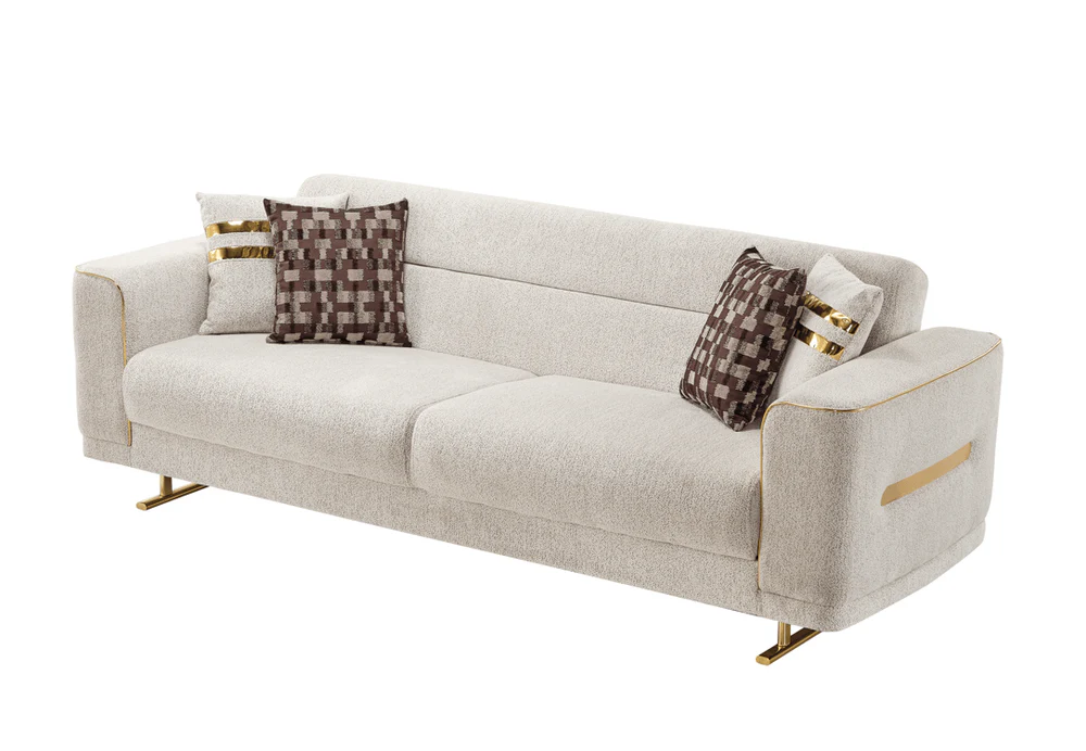 Introducing our exquisite Turkish-crafted sofa, a masterpiece of elegance and durability. Meticulously handcrafted from solid wood, this sofa not only boasts impeccable craftsmanship but also features sumptuous velvet upholstery, adding a touch of opulence to your living space. What sets it apart is the advanced waterproof and stain resistant fabric, ensuring that your sofa remains both stylish and resilient, ready to withstand everyday life’s challenges while retaining its luxurious allure.