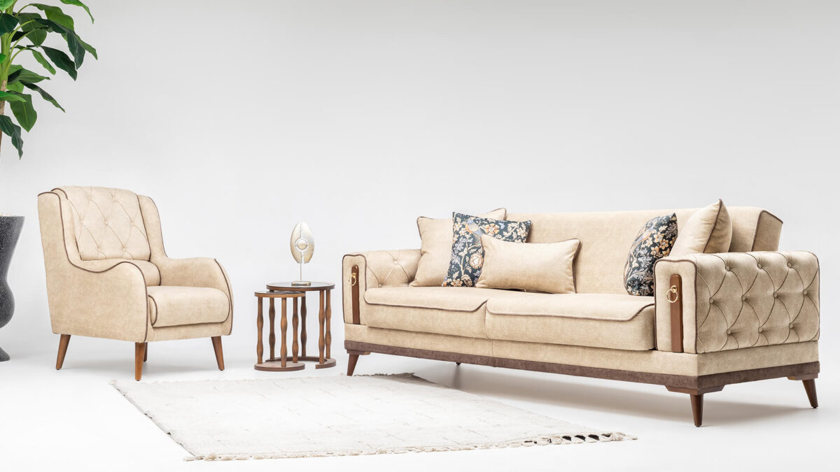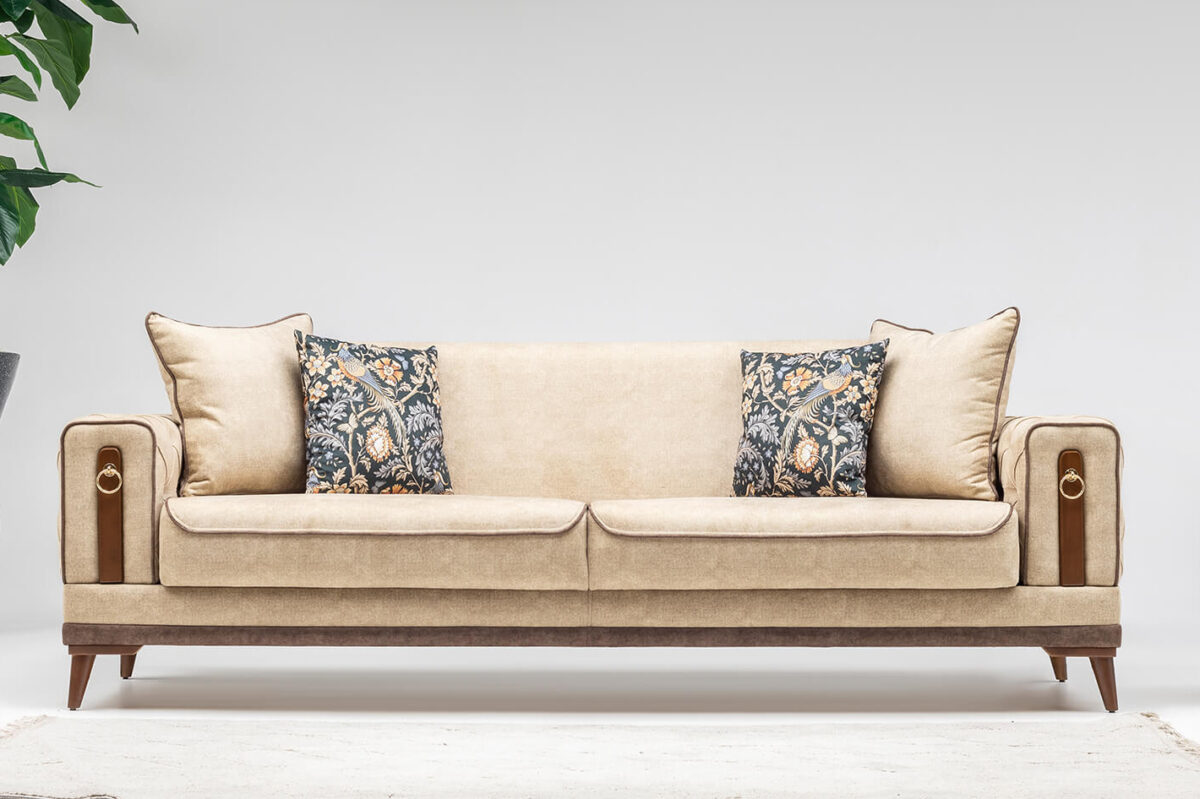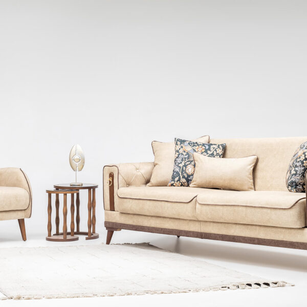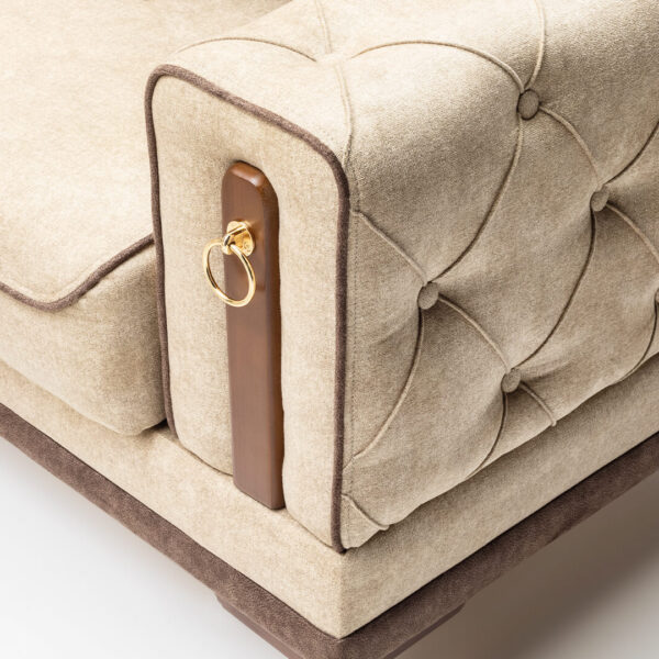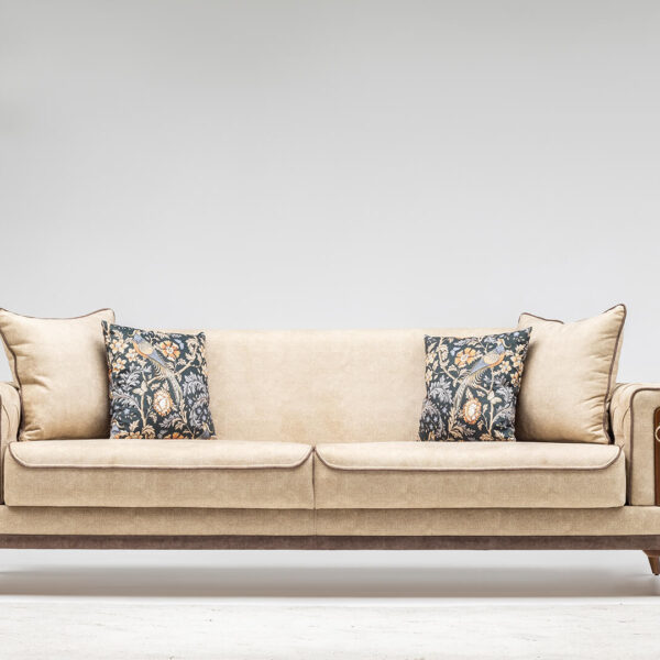 Introducing our exquisite Turkish-crafted sofa, a masterpiece of elegance and durability. Meticulously handcrafted from solid wood, this sofa not only boasts impeccable craftsmanship but also features sumptuous velvet upholstery, adding a touch of opulence to your living space. What sets it apart is the advanced waterproof and stain resistant fabric, ensuring that your sofa remains both stylish and resilient, ready to withstand everyday life’s challenges while retaining its luxurious allure.