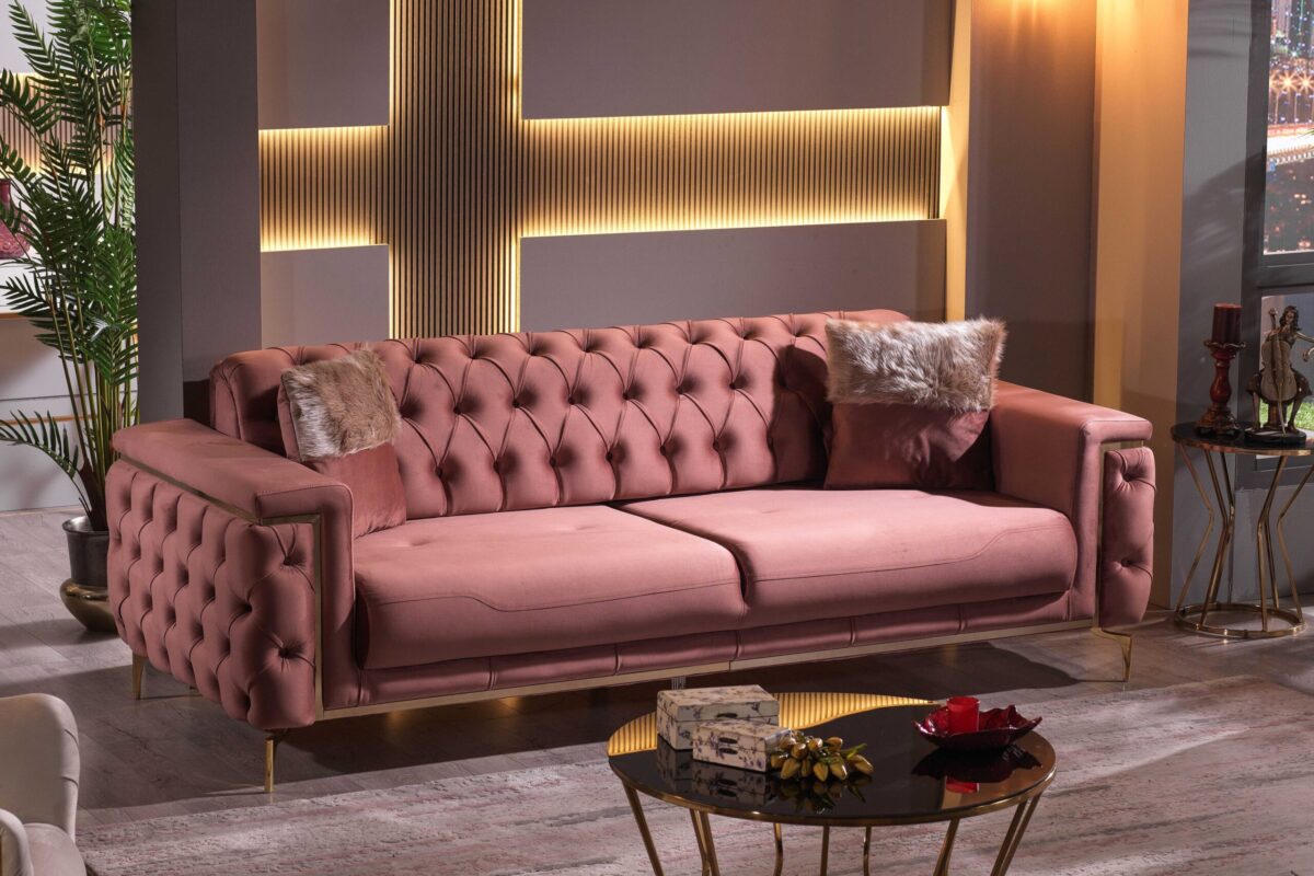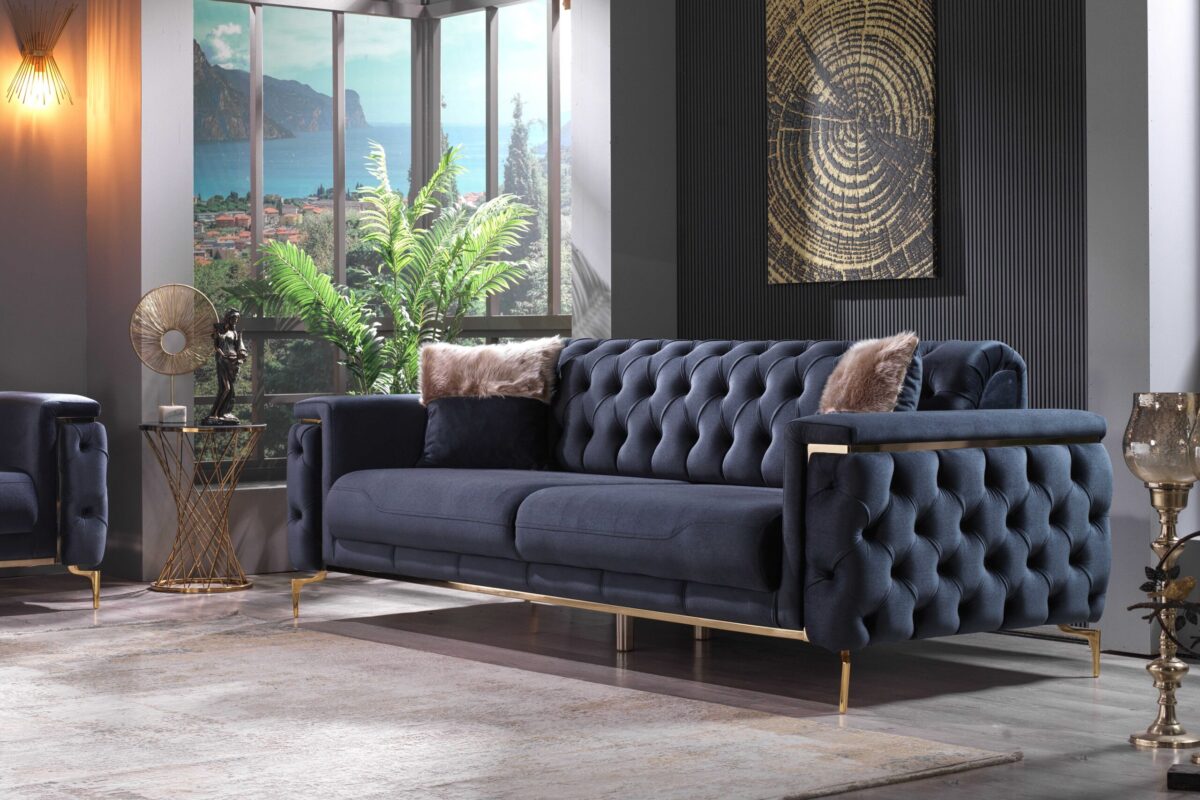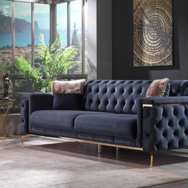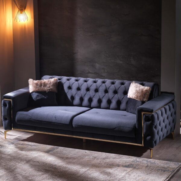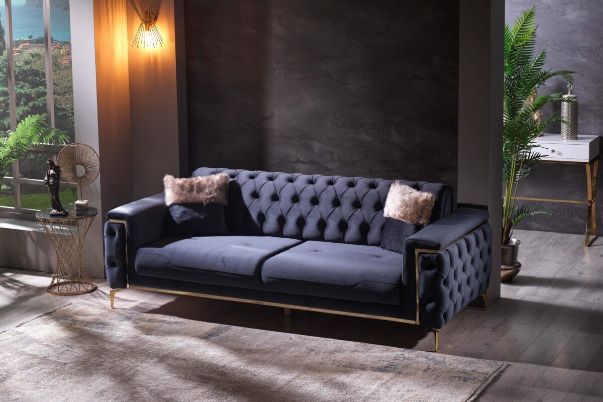 Introducing our exquisite Turkish-crafted sofa, a masterpiece of elegance and durability. Meticulously handcrafted from solid wood, this sofa not only boasts impeccable craftsmanship but also features sumptuous velvet upholstery, adding a touch of opulence to your living space. What sets it apart is the advanced waterproof and stain resistant fabric, ensuring that your sofa remains both stylish and resilient, ready to withstand everyday life’s challenges while retaining its luxurious allure.
