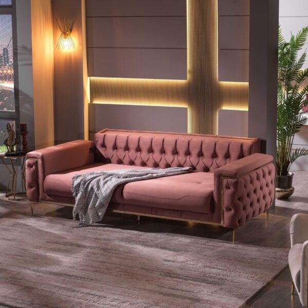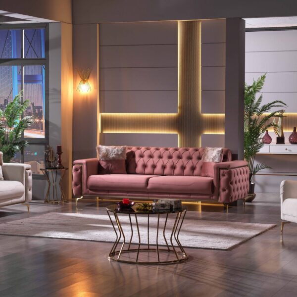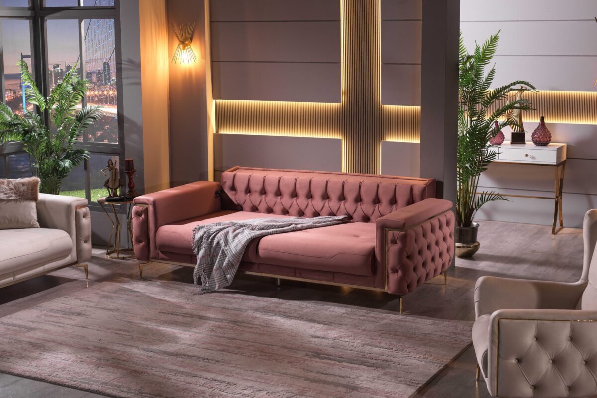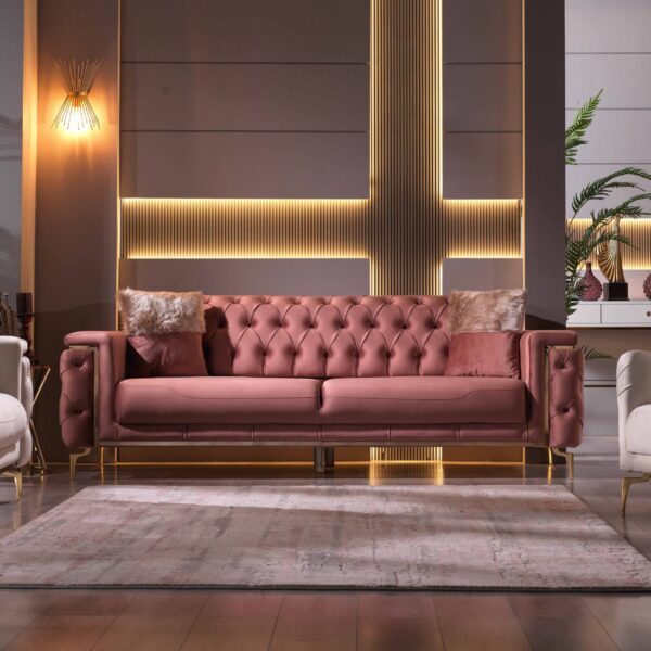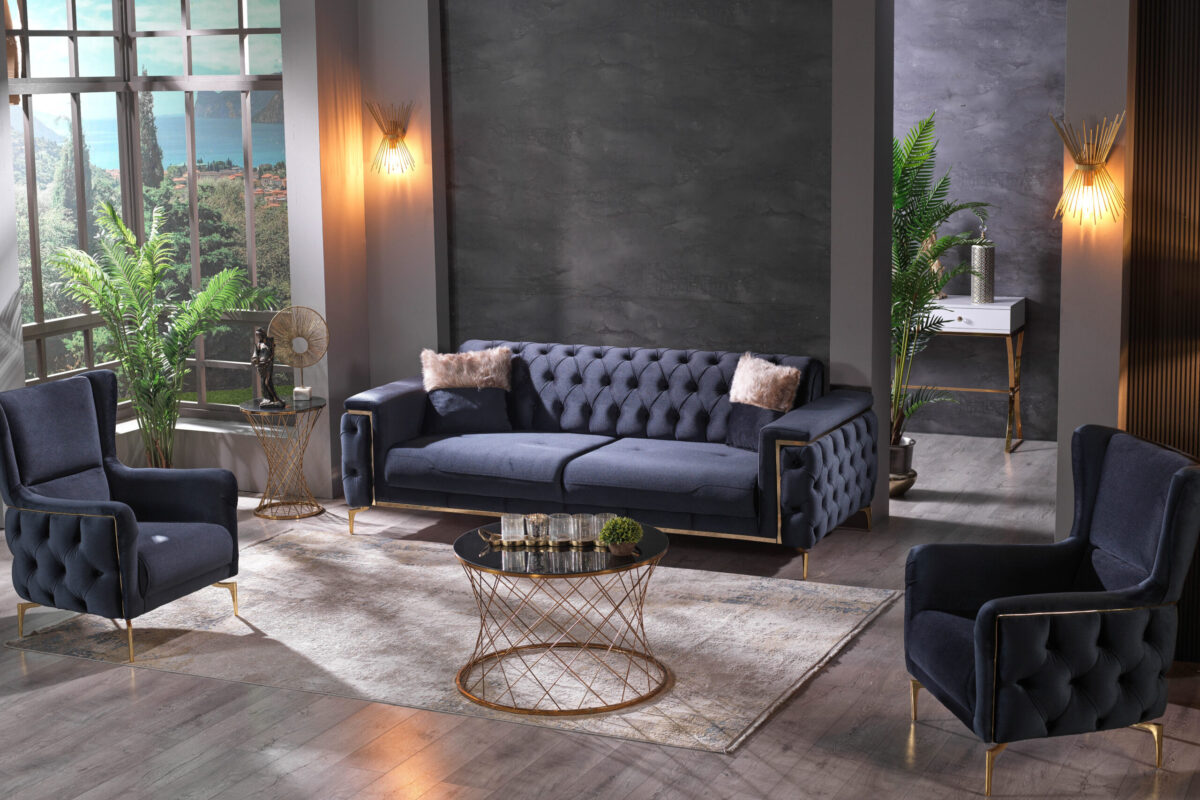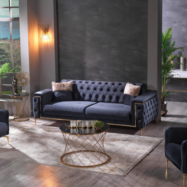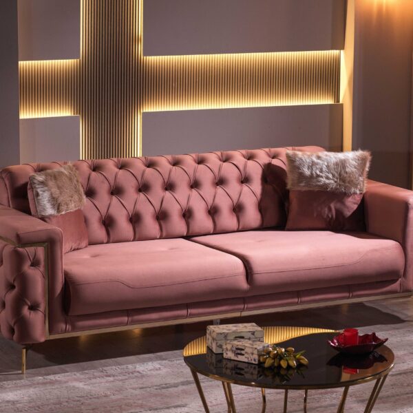 Introducing our exquisite Turkish-crafted sofa, a masterpiece of elegance and durability. Meticulously handcrafted from solid wood, this sofa not only boasts impeccable craftsmanship but also features sumptuous velvet upholstery, adding a touch of opulence to your living space. What sets it apart is the advanced waterproof and stain resistant fabric, ensuring that your sofa remains both stylish and resilient, ready to withstand everyday life’s challenges while retaining its luxurious allure.