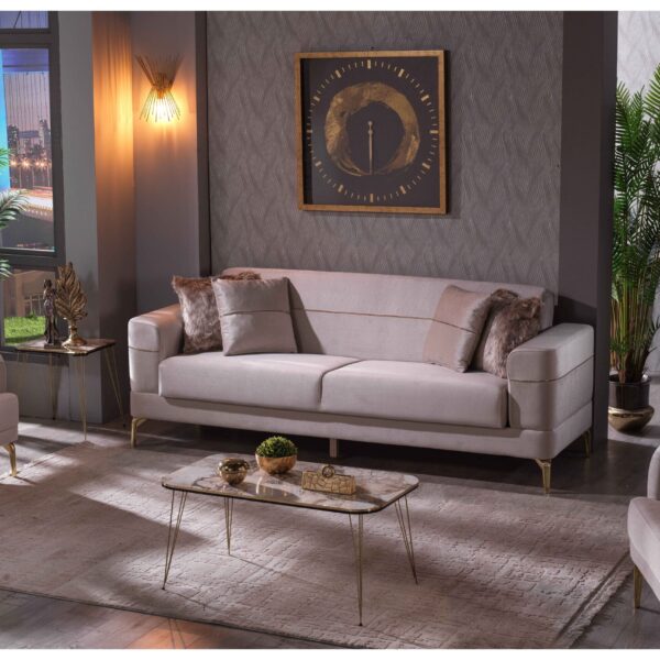 Introducing our exquisite Turkish-crafted sofa, a masterpiece of elegance and durability. Meticulously handcrafted from solid wood, this sofa not only boasts impeccable craftsmanship but also features sumptuous velvet upholstery, adding a touch of opulence to your living space. What sets it apart is the advanced waterproof and stain resistant fabric, ensuring that your sofa remains both stylish and resilient, ready to withstand everyday life’s challenges while retaining its luxurious allure.